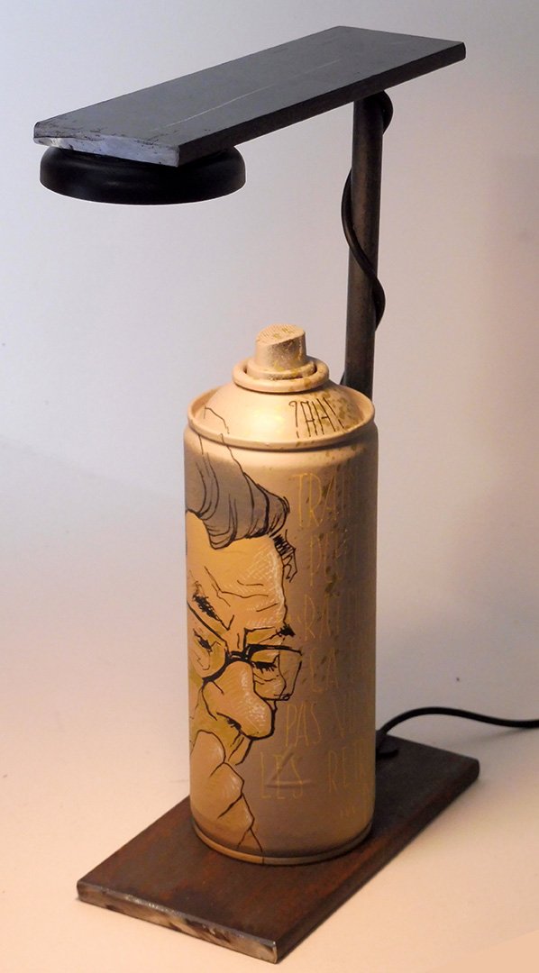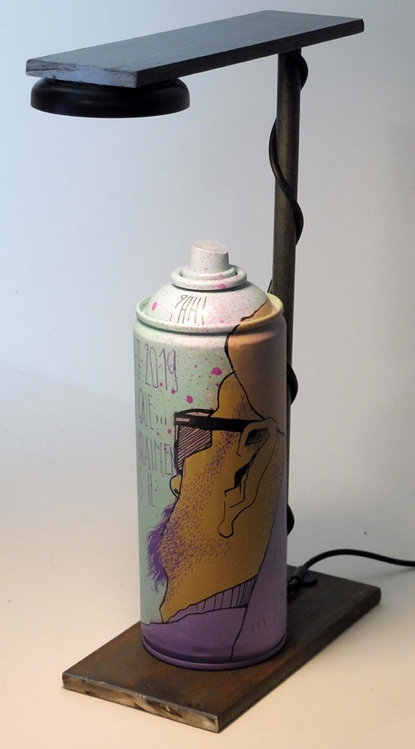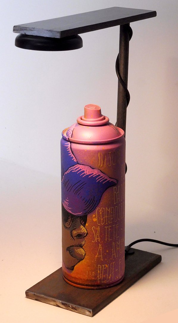 Chaque bombe peut être personnalisée par l’artiste, ou changée selon l’ambiance que vous souhaitez créer. Ce concept libre transforme un objet du street-art en élément lumineux, sculptural, et totalement évolutif.